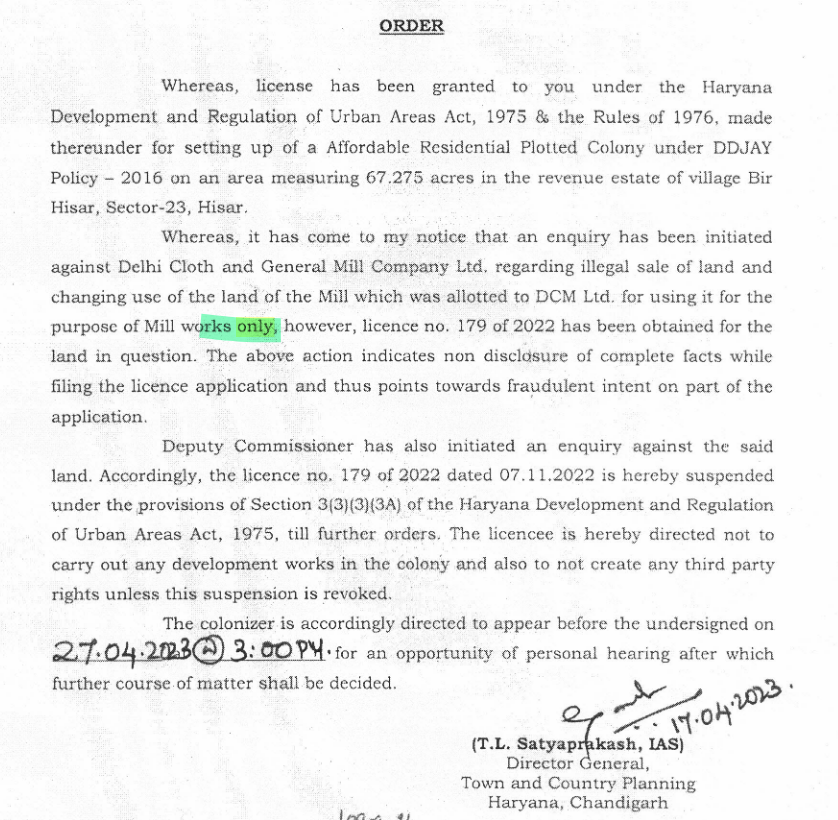Tanishk_Ojha DCM Ltd - license HRERA https://haryanarera.gov.in/view_project/project_preview_open/2202